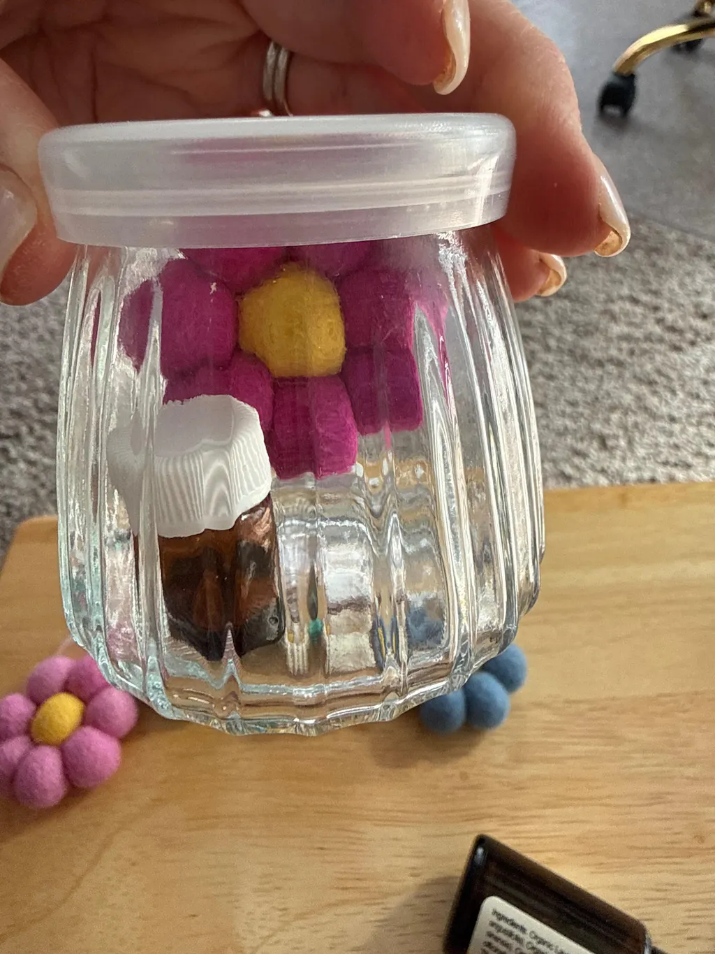 We are having a Pickleball round robin with 14 friends and we usually put out a table with treats and small gifts. …theme was pastels and flowers. They will love these flowers and the friends oil.